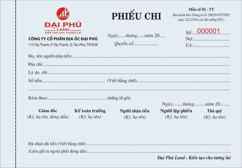 - In phiếu chi tùy theo kích thước mà khách hàng yêu cầu: có thể cỡ A4. A5, hoặc nhỏ hơn.